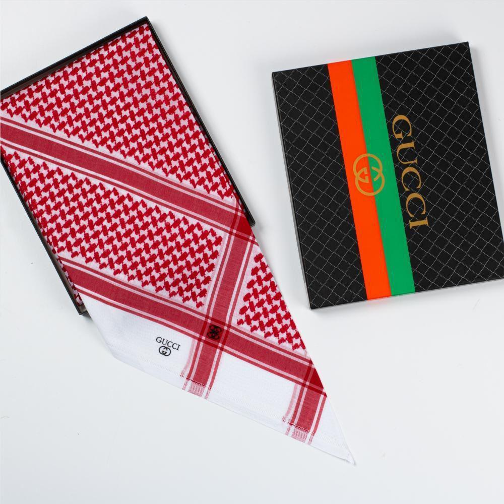 أفخم الأشمغة من اصدارات الحديثة لقوتشي تم تصميمه من ارقى انواع الاقمشة عالية الجودة وبأفضل طرق التصنيع العالمي بنقشة كلاسيكية تزين الشماغ مع العلامة التجارية قوتشي المطبوعة عليه باللون الازرق المميز وبأجود انواع القطن العالمي وقد صُنع ضمن ارقى المعايير الأوروبية لتضفي على شكله مزيد من الأناقة والوقار والتميز بفضل نعومته وتماثل شكل حياكة الحواف وتطابق اطرافه بالميلي عند اللبس يمنحك طابع رسمي وقوة حضور لامثيل لها .